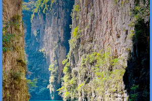 我们乘坐观光车-游船码头-峡谷爱心步行2公里-索道下站--索道山顶-玉皇宫-可坐空中巴士到达天空之城-天空之城电梯到达山底,全程需要5-6小时。有以下看点:1八泉峡的水色彩多变,下船至索道一处一景,水的深浅与光影的强弱都会影响水的色彩,非常漂亮;2爱心山谷是属于八泉峡特有的浪漫;3乘坐索道,欣赏山的壮美与辽阔,最美的山景尽收眼底。
