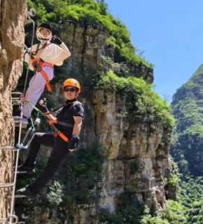飞拉达来源于意大利语中Via Ferrata 的音译中文,意译为“铁索攀岩”,起源于第 一次世界大战,在欧洲发明了近百年,是在欧洲广受欢迎的运动项目。