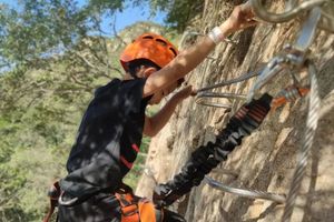 当攀爬于高山岩壁时,面对各种困难是放弃还是继续坚持,都会随时考验着参与者的耐力意 志力、荣誉感及自我超越的决心。少年们在进行飞拉达挑战时,会让自己慢慢适应挑战自我 的思维意识,以实现成长的飞跃。