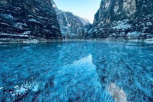 冰川峡谷区的 “气泡冰” 被游客誉为 “北京的贝加尔湖”,尽显原始蛮荒之美;而 70 米高水库大坝形成的巨型冰瀑,经人工修饰冰花、冰柱后,成为壮观的冰瀑景观,此外冰川飞瀑区还新增气膜灯与精品雪雕,让自然冰景和人工艺术进一步融合,提升了视觉效果。