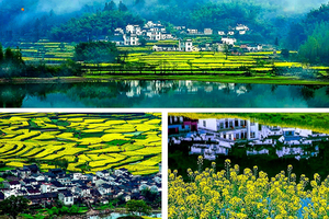 三月中下旬,棵棵粉红的桃花、洁白的梨花点缀在漫山遍野金黄色的油菜花中,掩映着白墙灰瓦的徽派建筑,使得每一个逃离纷繁城市的人都能找到归宿。