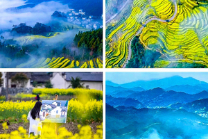 三月的婺源,一半是花、一半是雨,时雨时晴。从花季开始到凋落只有短短二十余日,每一日都是不一样的美景。雨雾朦胧中的高低山、绿梯田、黄花地...