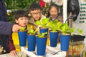 2. 学员自主挑选健康鱼种,放入微装备养殖槽,完成鱼菜共生生态系统组装。