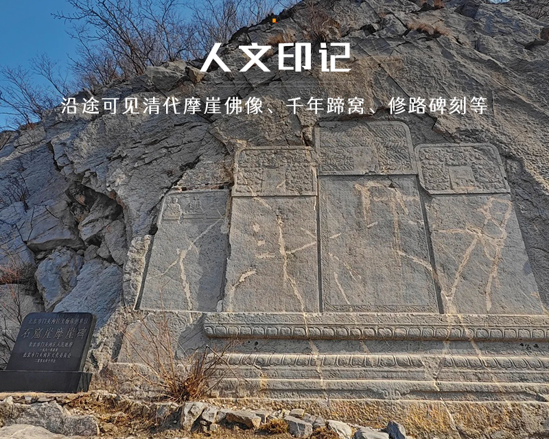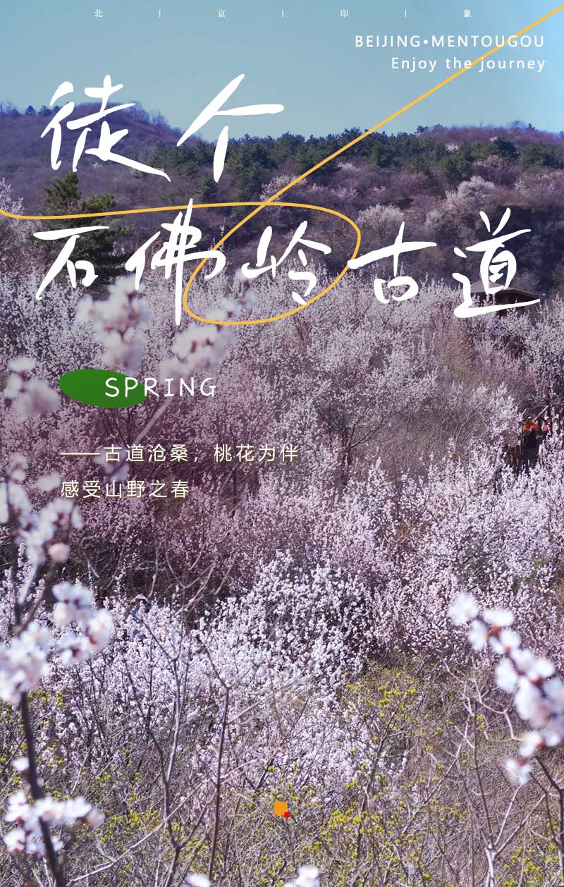 石佛岭古道是京西一条充满历史韵味与自然野趣的经典徒步路线。走在数百年前运送煤炭、货物的古商道上,青石路面和蹄窝遗迹记录着时光。两侧及山崖上野性十足的山桃花热烈绽放,粉白的花朵与苍劲的山石、古朴的道路形成强烈对比,一步一景仿佛穿越古今。沿途可见清代摩崖佛像、修路碑刻等人文遗迹。桃花掩映间,更添几分寻幽探古的意趣。整条路线野趣盎然桃花非人工种植,而是自然散布于山间与初春的山色融为一体。