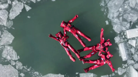 🦞 身着特制“小龙虾”红袍,仰卧冰面与蓝天相拥,解锁冬日最潮的户外治愈体验