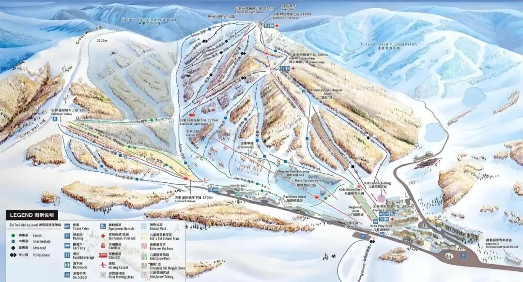 雪道资源丰富:太舞滑雪场目前已建成雪道31条,初、中、高级雪道占比3:4:3;总长30公里,造雪面积约80公顷,6条高速缆车、13条魔毯。