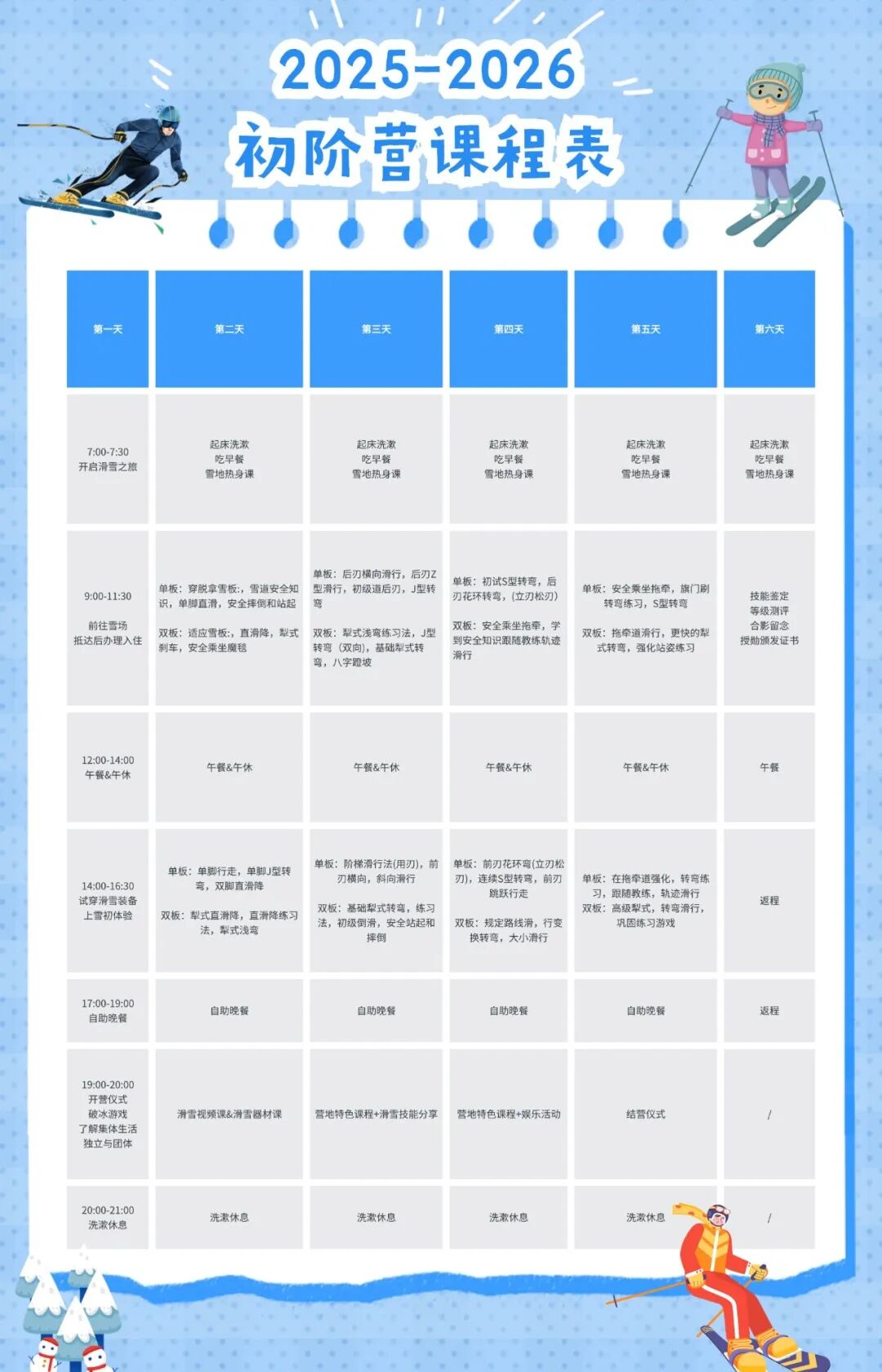 1. 报名请提供:孩子姓名、身份证号、身高、体重、鞋号、年龄、性别、家长姓名、电话号码、有无基础(根据水平不同等级雪道训练)、注意事项等信息。