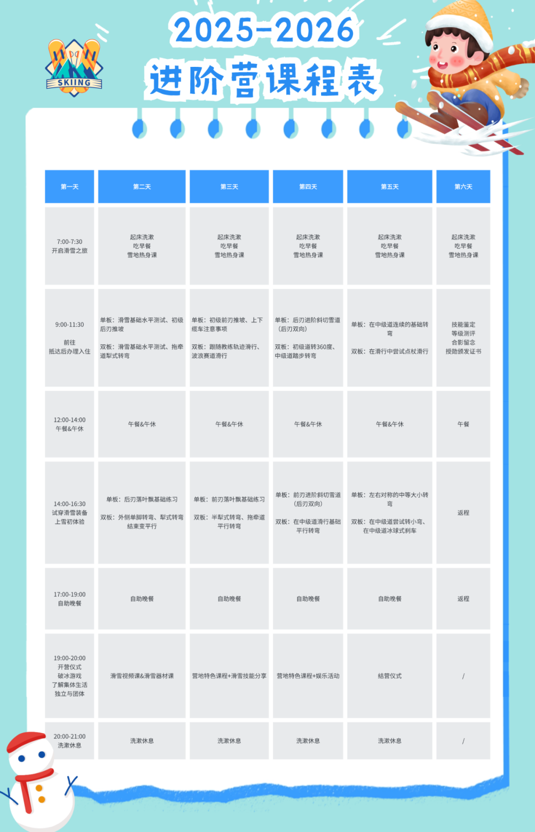 冬令营的滑雪体系,严格依据 “北京市冬季运动管理中心与北京市滑雪协会” 颁布的权威标准。