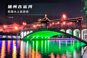 - 你还可以自由结伴前去游览古运河,夜色下的古运河在灯光的照耀下显得那么安详、宁静,看着风景真的是不错的选择!古运河扬州段是整个运河中最古老的一段。这一段运河最为古老,可谓历史遗迹星列、人文景观众多。乘坐游船沿着“乾隆水上旅游线”悠悠地向蜀岗瘦西湖风景区荡去,领略扬州夜色。那一幕幕美丽的风光不时出现在游客的面前,美丽的古运河风光,秀丽的古城,在越来越宽阔的水面上尽显它的美丽。