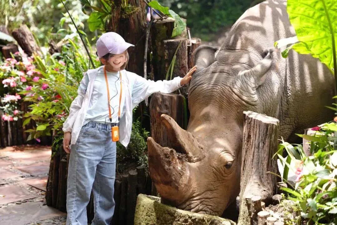 抚摸上憨憨的白犀牛粗糙的皮肤,感受它的呼吸。