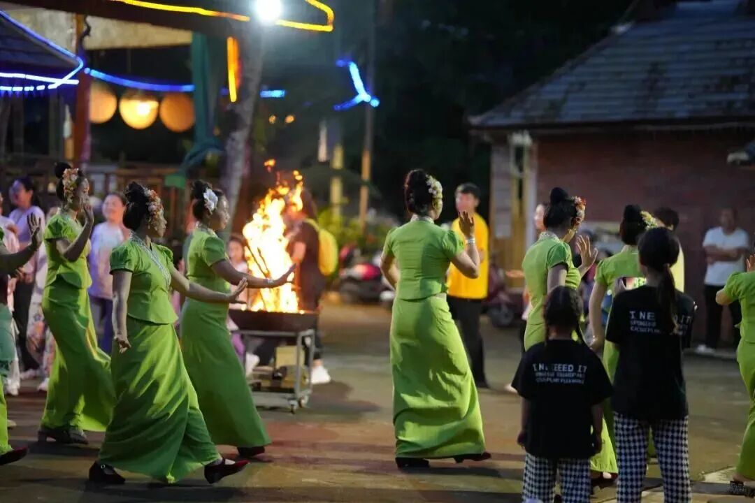 篝火晚会这样一个可以拉近所有人距离的活动当然少不了,且歌且舞,让夜色也染上欢快的印记。