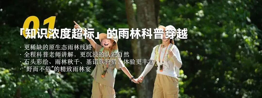 特别邀请动植物专家带领,在观察中探索各种雨林奇观,把雨林穿越变成有趣的自然百科课堂。