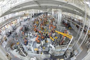 高度自动化的焊接车间,观看上千台机器臂如何实现5款车型全数字化混线生产。