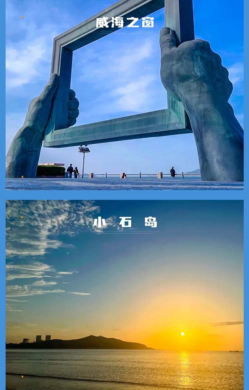 -适时集合前往酒店办理入住。之后可以结伴品尝威海美食,自由游览威海最美海岸线(可以打卡火炬八街、幸福门、威海之窗等网红景点;还可以游览威海公园、悦海公园、海源公园、海上公园等海岸线公园;傍晚可在小石岛欣赏日落;晚上可以自由前往韩乐坊夜市品尝美食小吃)。