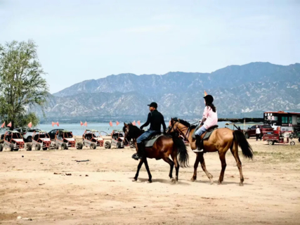 - 13:30|开始骑马沿官厅水库穿越,沿途官厅水岸湖光山色,水中倒映的风车群,过膝的芦苇荡,遮天的松树林,风景如画,可在景色绝佳处拍照休息,全程20KM,约3小时。