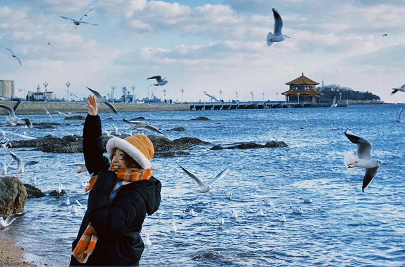 - 之后集合前往青岛栈桥。当冬日的寒风带着一丝冷冽,青岛的栈桥却依旧热闹非凡。冬日的青岛栈桥是海鸥的聚集地,它们从西伯利亚飞来,与游客和谐共舞。这里,海鸥与游客共同谱写一曲浪漫的乐章,每一次的相遇都仿佛在诉说着这座城市的独特故事。栈桥,宛如一颗璀璨的明珠,静卧在碧波荡漾的青岛湾上。作为这座城市的标志性建筑,它历经百年风雨,见证了无数潮起潮落的瞬间。