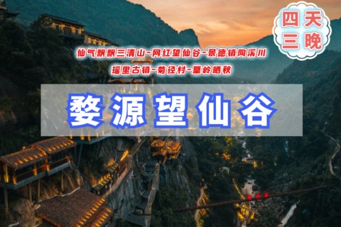 - 早餐后我们游览三清山『三清山』兼具“泰山之雄伟、黄山之奇秀、华山之险峻、衡山之烟云、青城之清幽”。“奇峰怪石、古树名花、流泉飞瀑、云海雾涛”并称自然四绝。三清山也是道教名山,山上的三清宫香火十分旺盛。在偌大的三清山中,你可以乘缆车尽赏山间美景,行走栈道,看松林阵阵,云雾霭霭。早可看日出,夕可赏晚霞,待薄雾起时,身处深山里,还真有那么些仙山的意味。