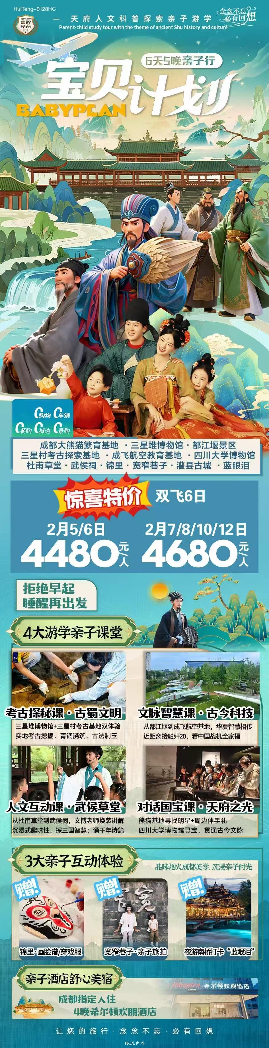 成都亲子游【宝贝计划】2.7/8/10/12双飞6日成都大熊猫/三星堆/都江堰/ 川博/杜甫草堂/武侯祠/锦里 [复制链接]
