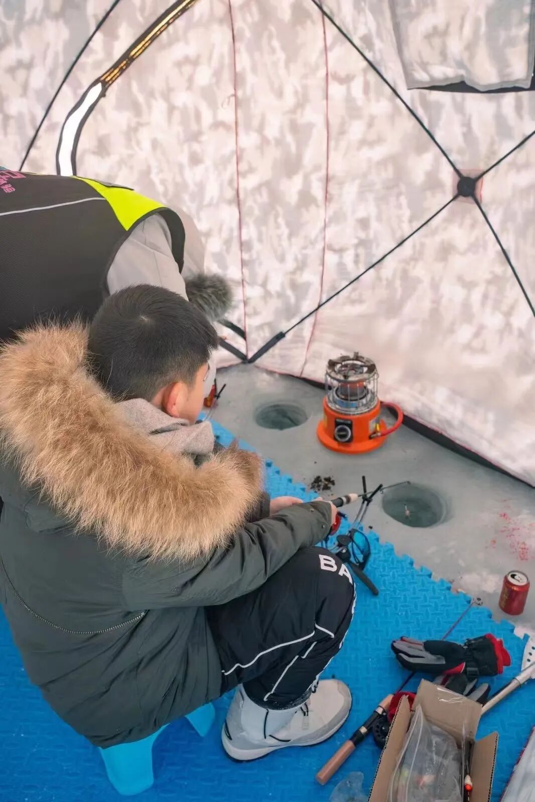 在冰封的湖面上,我们支起温暖的帐篷,于一方冰洞前体验冰钓,感受时光缓缓流淌的宁静。