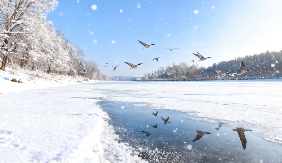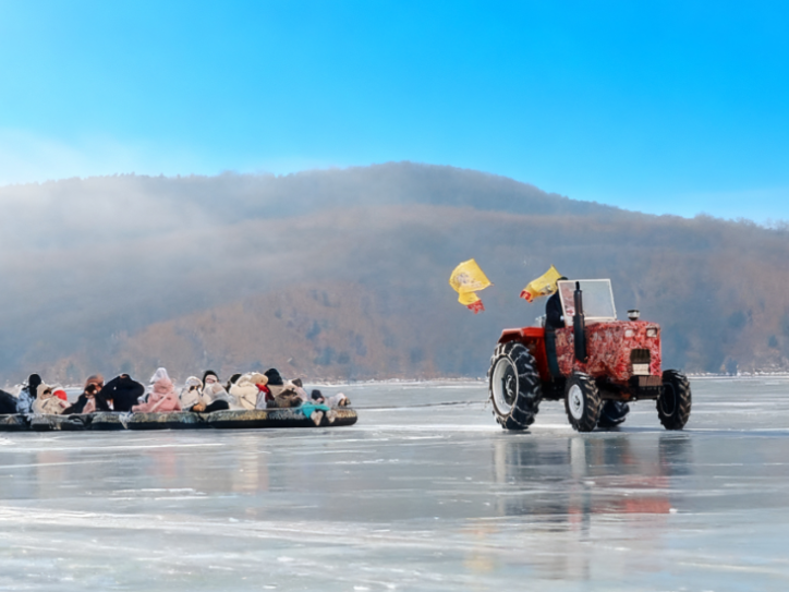 不仅有冰壶比赛的智慧碰撞,还有冰上龙舟劈波斩浪的激情,更有驾着冰爬犁、抽动冰嘎的无尽童趣,当然,如果有机会看到成群大雁在冰湖上空悠然伴飞,也是千万不要错过的一幕哦。