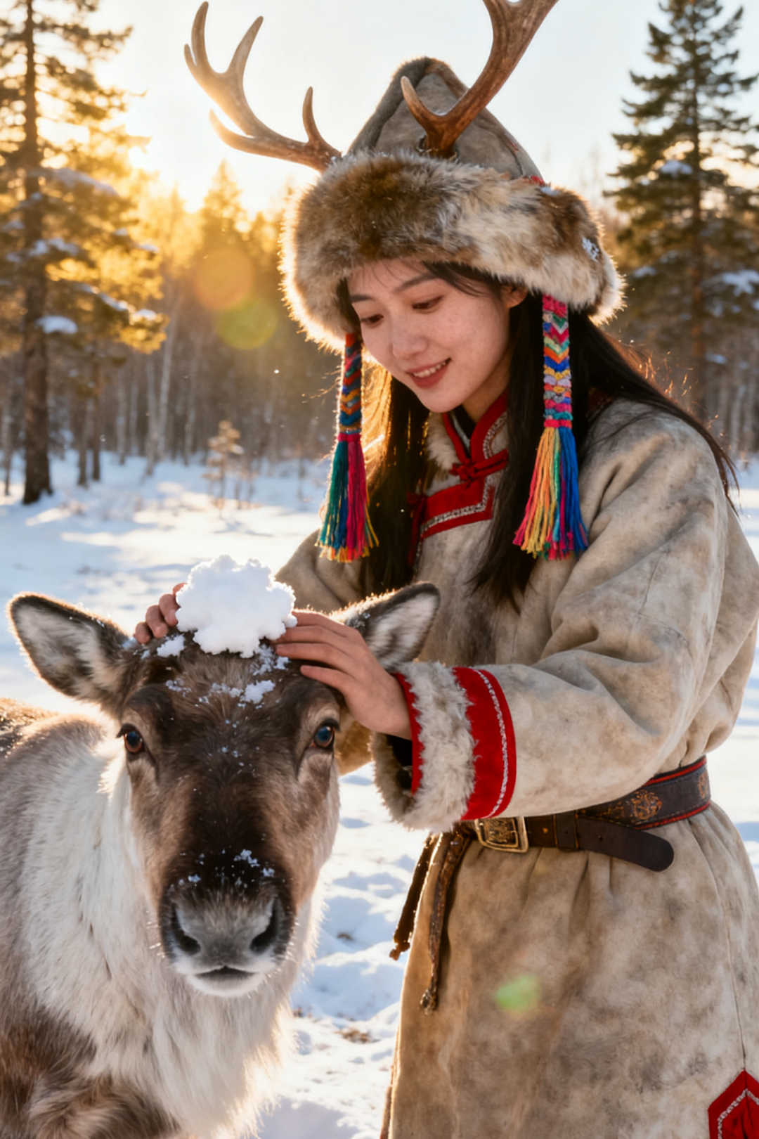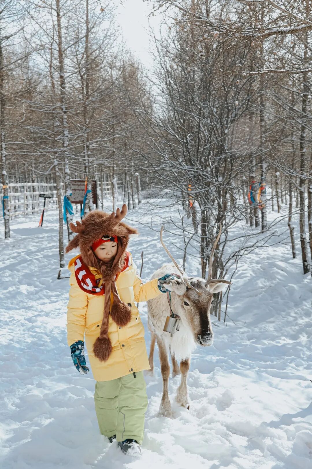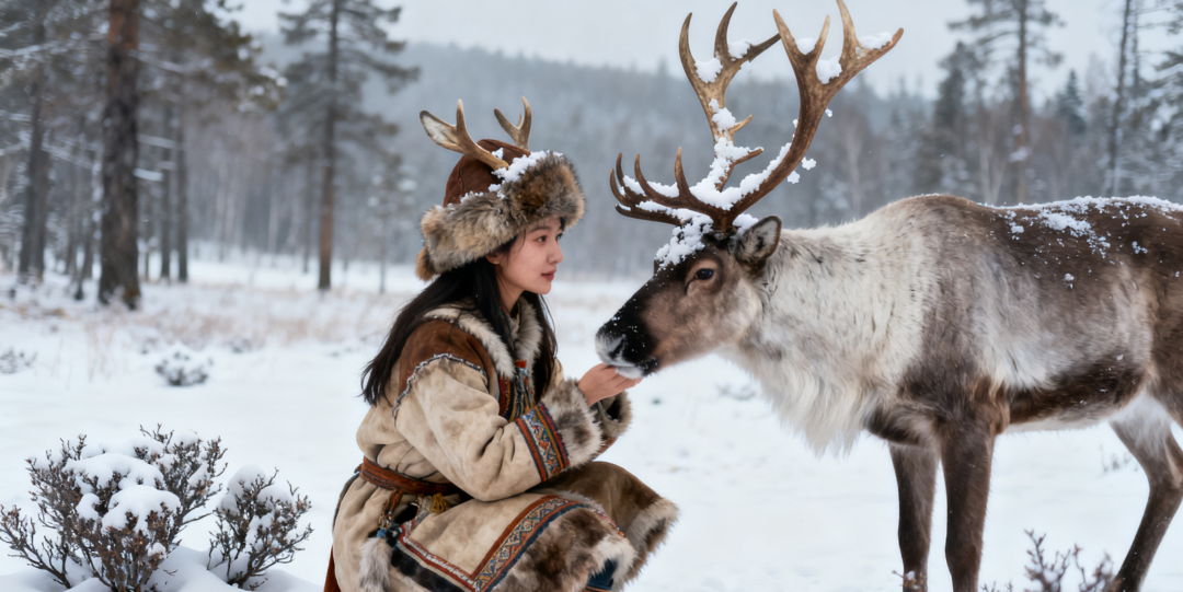 穿上我们精心准备的鄂伦春民族服饰,戴上特色狍角帽,化身鄂伦春的森林儿女,在雪原、森林与驯鹿构成的天然影棚中,拍一组绝美的雪地森系大片。