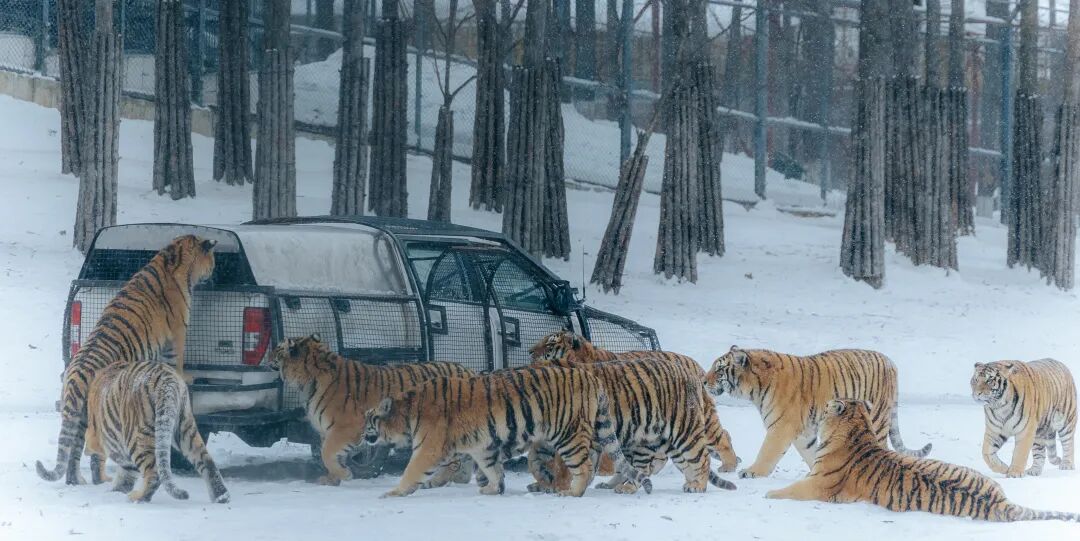 换乘安全的老虎专用投喂车,备好新鲜肉条,手持特制工具,在东北虎靠近的瞬间,亲手将肉条送至猛虎口边,体验一场令人心跳加速的近距离对话。