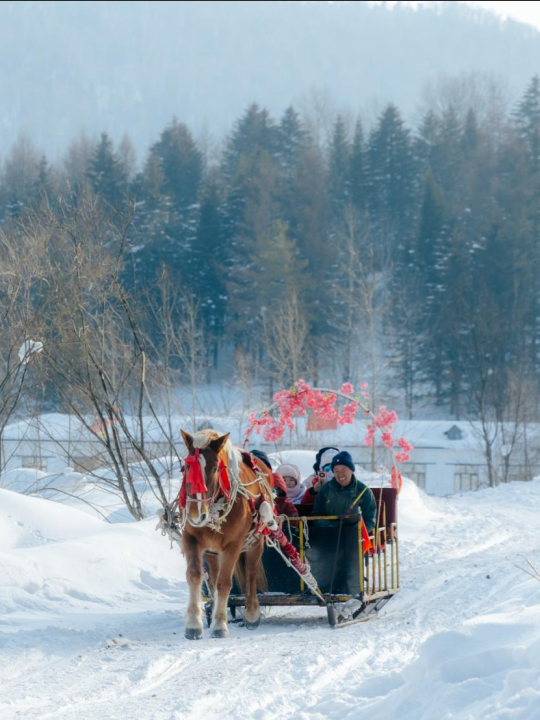 坐上古朴的马拉爬犁,穿梭于挂满雾凇的白桦林间,沉浸于小兴安岭最宁静原始的冬日韵律里。