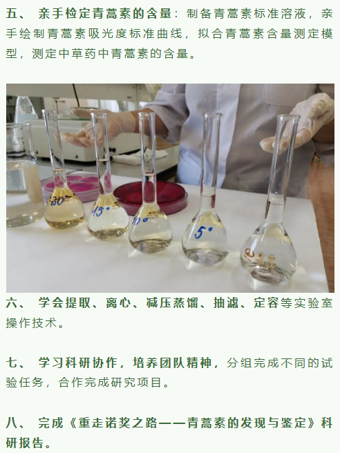 三、 实践青蒿素的提取工艺:在老师的指导下亲自从黄花蒿中提取青蒿素,了解植物化学的基本实验技术。