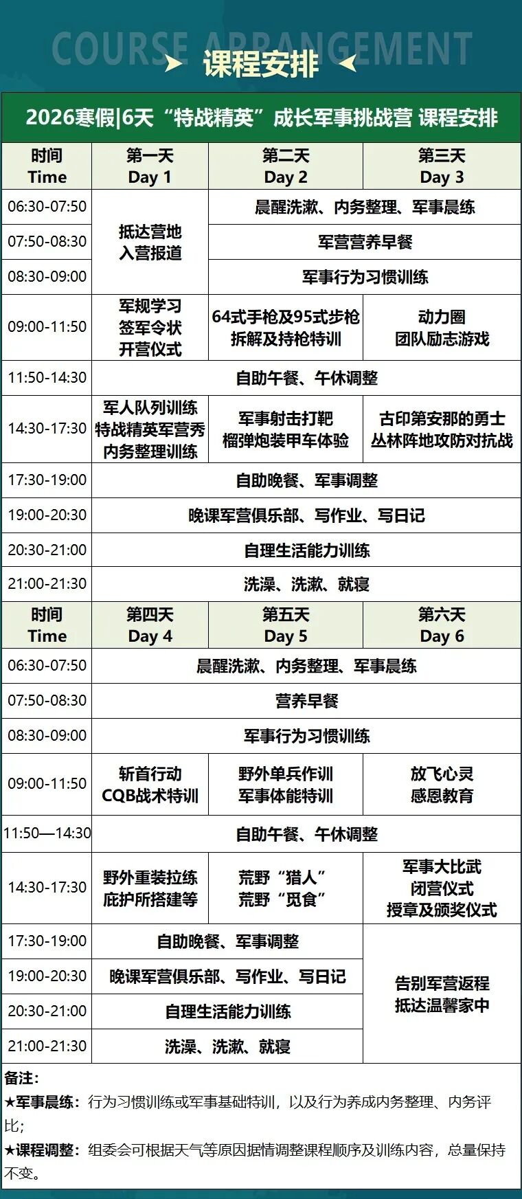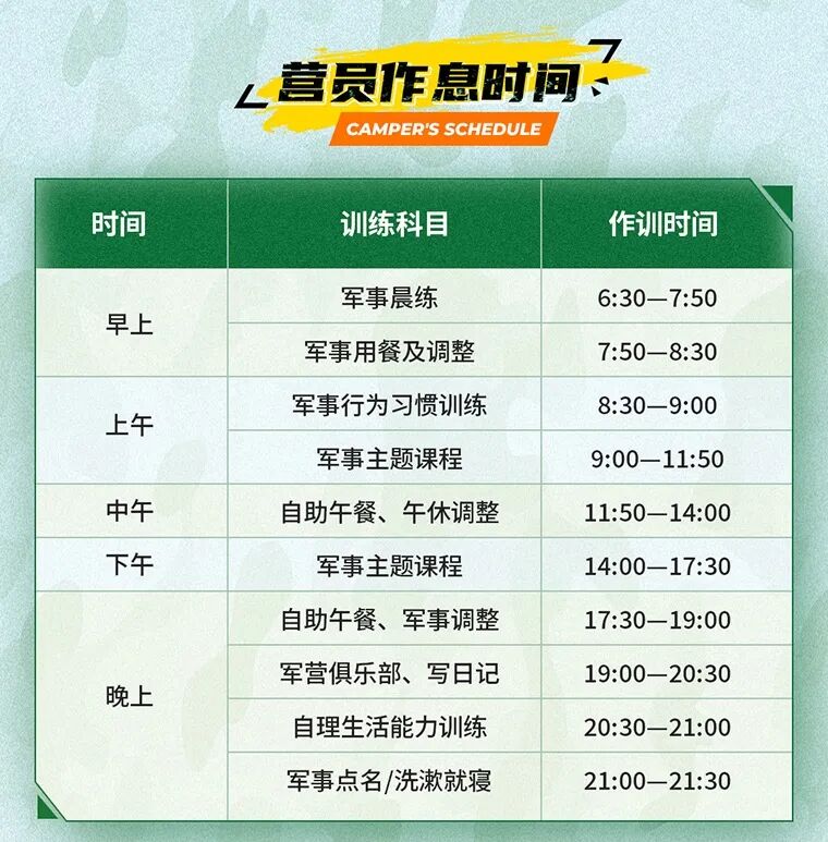国内冬夏令营以“军事”为主题的“主题营”模式开拓者,并是国内军事主题营NO.1领军者,中国少年预备役训练营18年来零事故零投诉。我们的每个训练课程均带有主题指向,目的是使参加冬夏令营的营员在体验中成长。