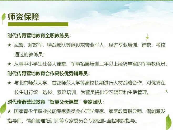 ★心智成长+励志教育培训:系统培训,使营员提高学习效率,同时让营员树立良好的世界观和价值观,清晰的规划出自己的人生道路,这样才会实现幸福人生;