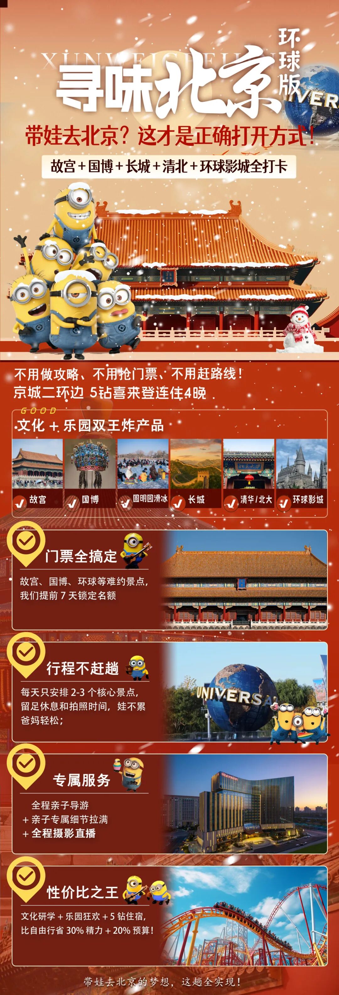 如果沿着华夏文明发展脉络探寻中国古都系列,北京一定是特别的一个。这次打破常规,开启一场精心策划的“王炸”级文化盛宴。在环球影城沉浸式玩转国际IP,连住4晚旺季高达1700+/晚的5钻酒店奢享度假,更特邀专业研学导师,国博深度导览,用生动的故事串联中华文明的璀璨脉络。