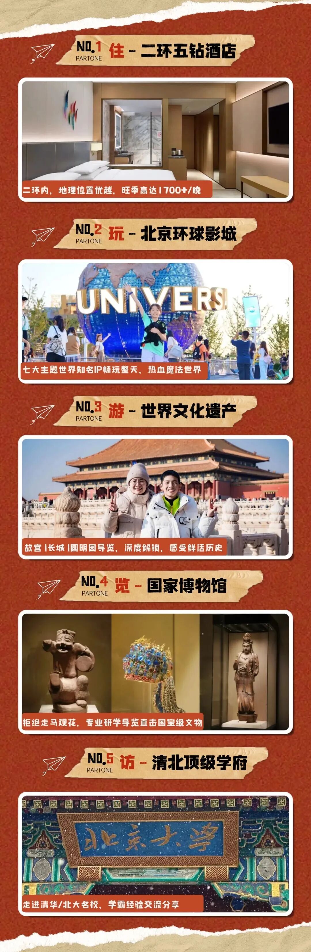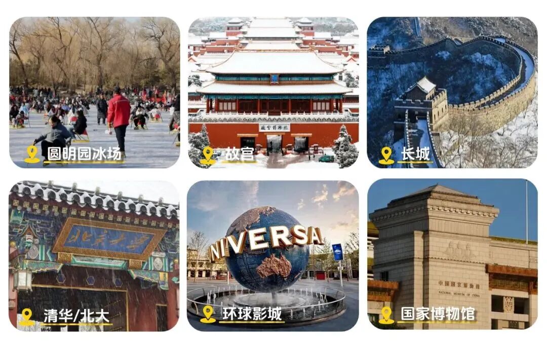 3. 门票:故宫、八达岭长城、圆明园、环球影城单日门票、国博或军博预约等,赠送清华或北大预约