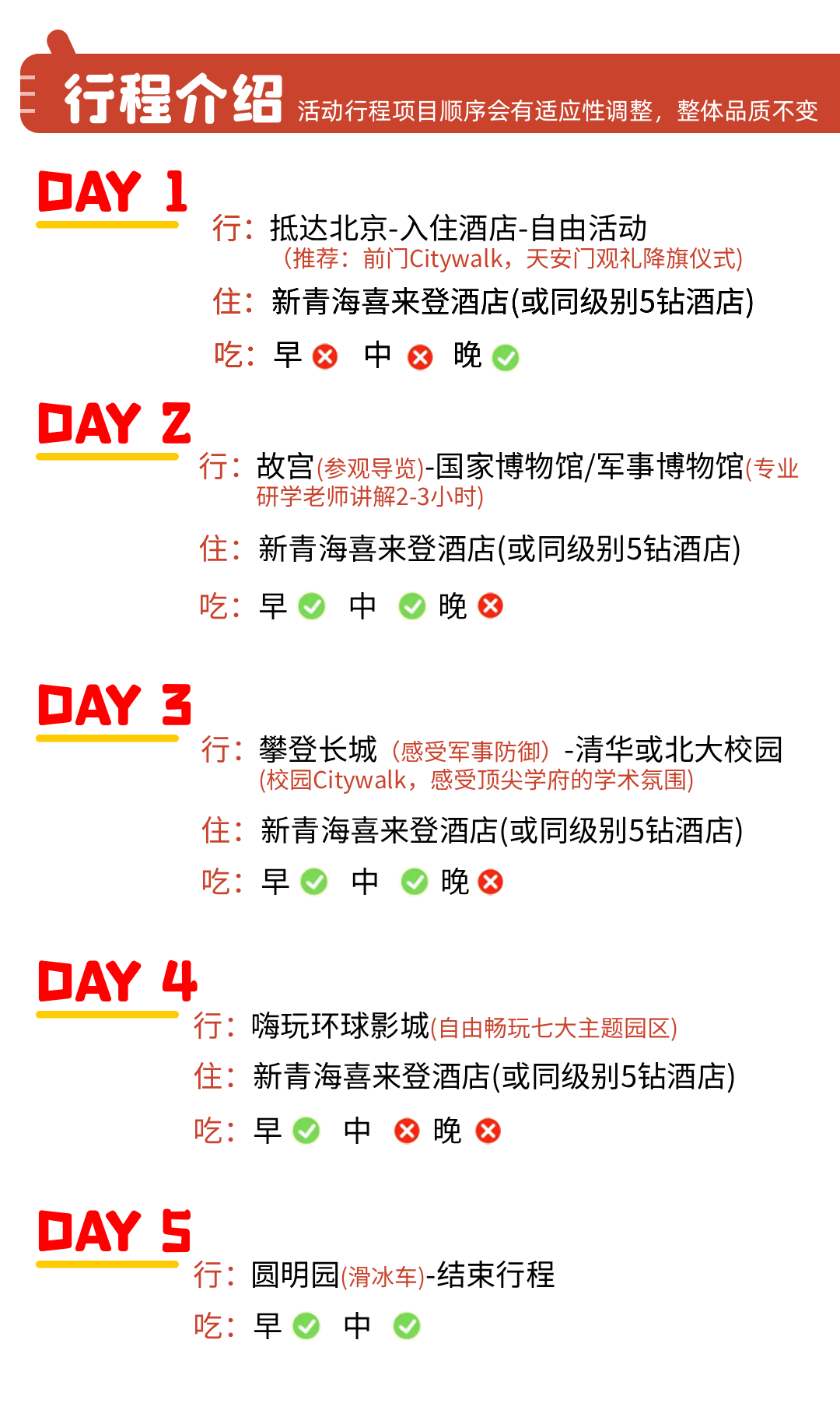 2. 住宿:4晚北京品质5钻酒店连住