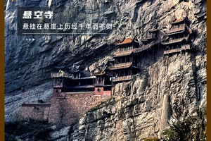 悬空寺位于山西省大同市浑源县恒山金龙峡西侧翠屏峰的峭壁间,素有“悬空寺,半天高,三根马尾空中吊”的俚语,以如临深渊的险峻而著称。建成于1400年前北魏后期,是中国仅存的佛、道、儒三教合一的独特寺庙。悬空寺就像悬挂在悬崖之上,全寺为木质框架式结构,值得惊叹的是它依靠榫接结构,嵌入崖内而不倒,距今已有1500多年历史,是国内现存最早、保存最完好的高空木构摩崖建筑,诗仙李白观后醉书壮观,徐霞客赞为天下巨观。