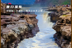 壶口瀑布是世界上最大的黄色瀑布,黄河水从 300 米宽的河床骤然收束至 50 米,以排山倒海之势从 20 多米高的陡崖倾注而泻,声如雷鸣、气势磅礴,展现着无与伦比的华夏气魄,也是中华民族精神的象征。