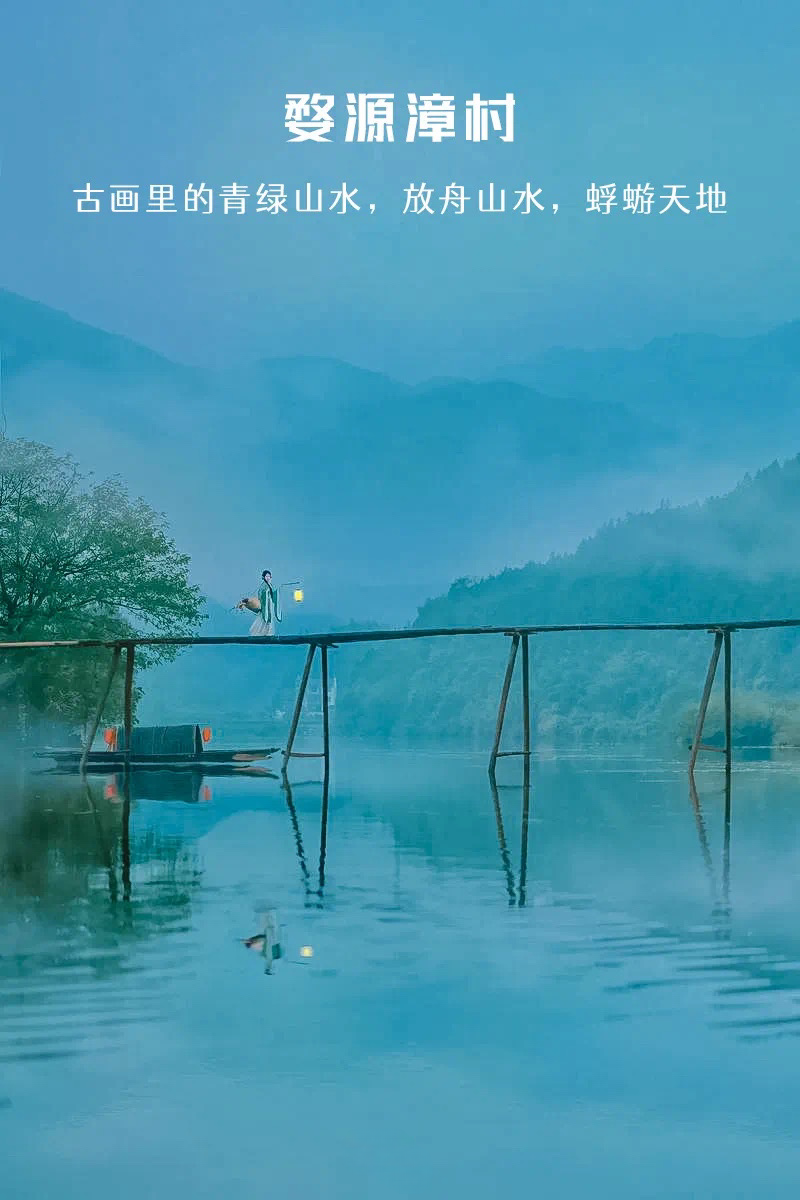 - 下午 适时前往婺源古村落『漳村』游览。一个古朴宁静的村子,最吸引人的当然是那120米的板凳桥,被誉为中国最长板凳桥。逛一逛村子,走一走板凳桥,还可以打卡一下村中的网红咖啡店!(注:漳村板凳桥有可能在雨季被冲毁)