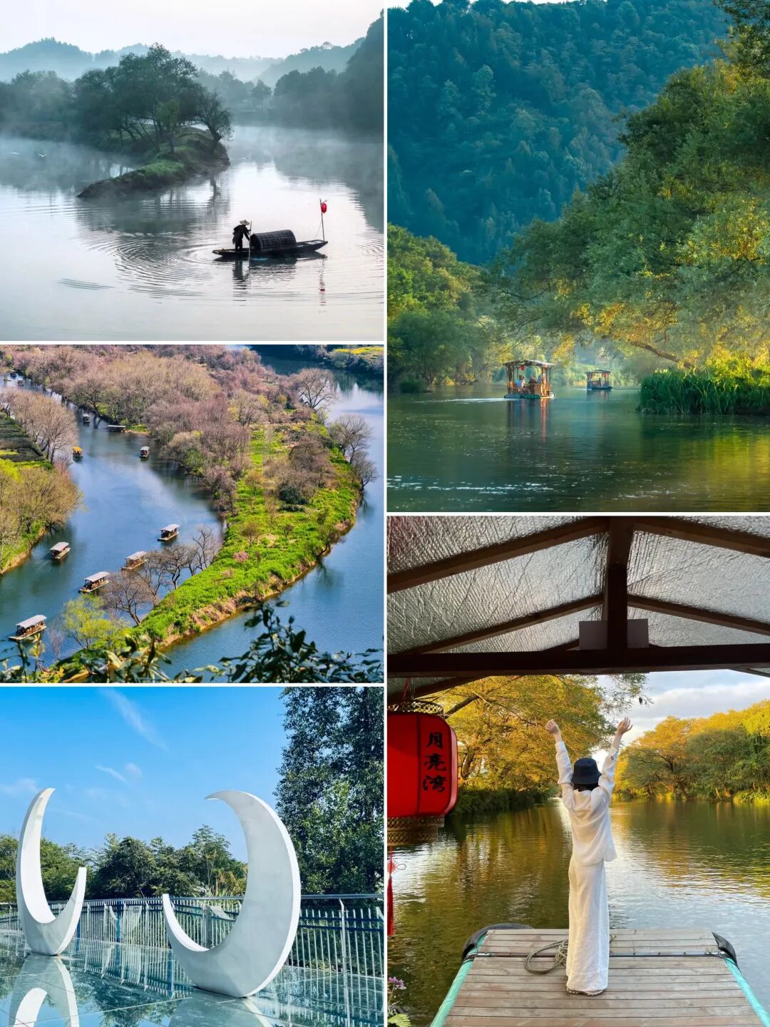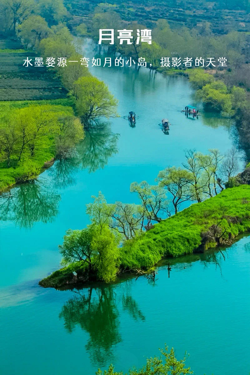 月亮湾是半路上的一处小景点,因恰如月亮的形态、隔岸徽派民居的典雅、周边秀美的景色相融合。偶有三五农妇临湖浆洗,时常引得路人纷纷驻足,深得游客喜爱,拍摄此时美景。以至成为摄影爱好者们最佳拍摄地之一。