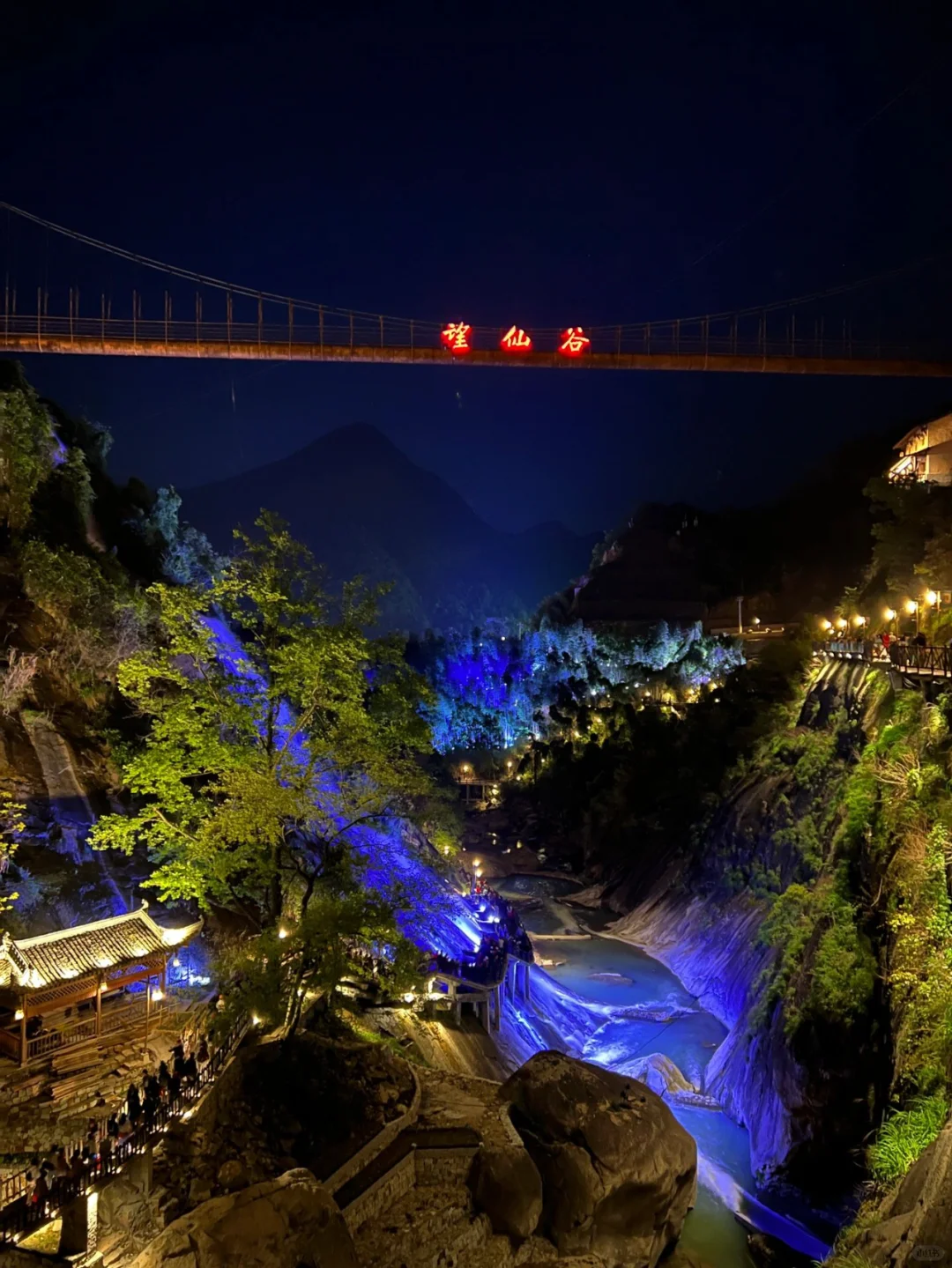 -下午适时集合前往『望仙谷』欣赏夜景。夜幕下的望仙谷处处灯火通明,古塔熠熠生辉,璀璨夺目,与五光十色的古街交相辉映,堪比丽江古城。空中俯瞰,整个山谷流光溢彩,灿若星河。在望仙谷沉浸式玩闹撒欢,满足大小朋友对美景的期待,夜晚,欣赏望仙谷景区迷人夜景,还有景区精心准备的灯光秀,感受传统文化的魅力。赶快约上好友一起来望仙谷景区,开启属于你的狂欢之旅吧!