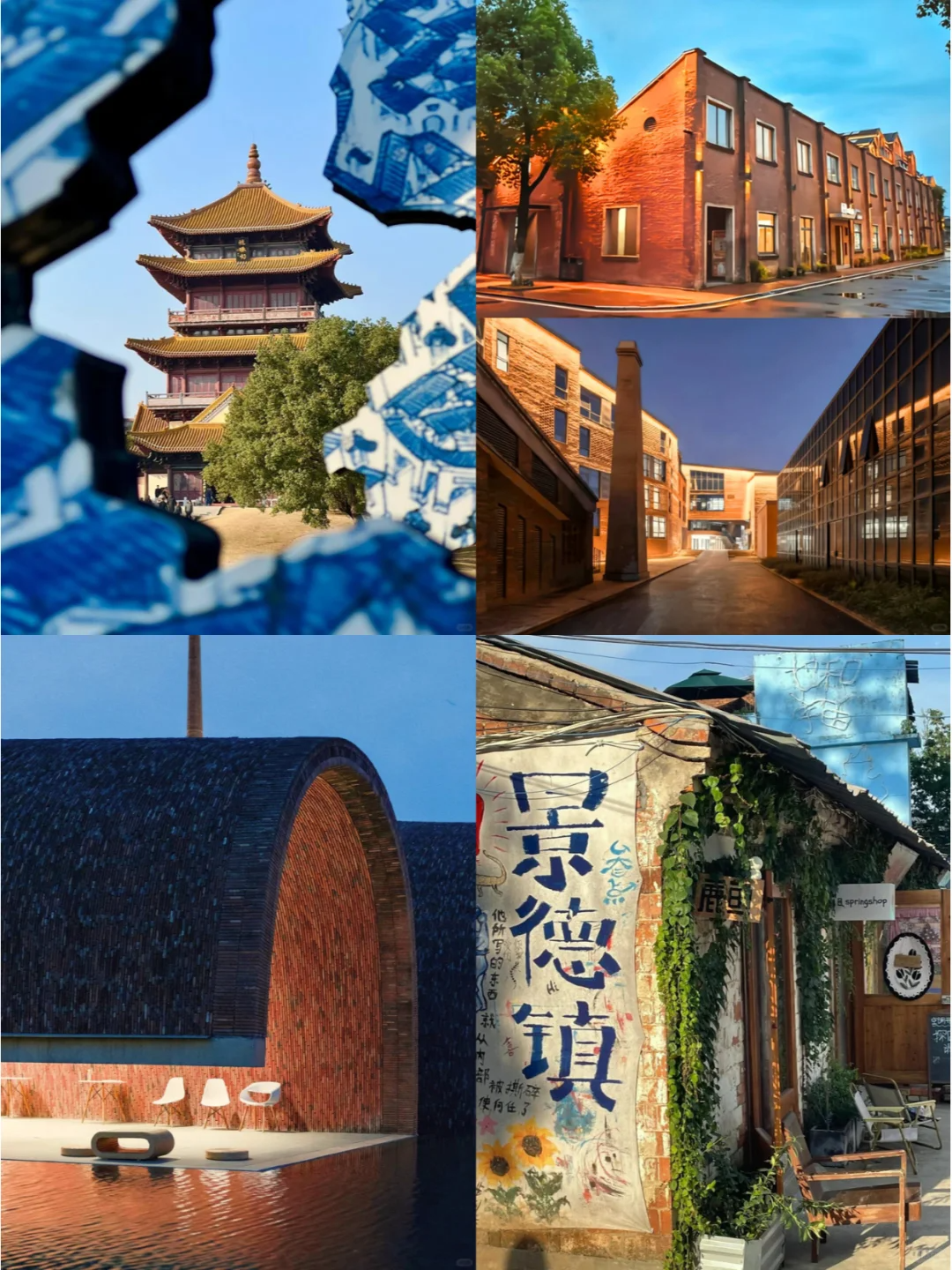 - 早餐后我们前往『景德镇陶溪川』打卡游览。陶溪川是一个陶瓷文化创意产业园区,这里适合文艺青年,园区的每个店子都特别文艺,从店名到外墙到内部装饰,在这里都不敢说自己是文艺青年……在创意园里能拍出很有50年代风格的照片,来往的人,配上标语,有一种旧时部队征兵的感觉,广场上的建筑非常精美,带点欧式风格。