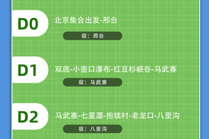 2)活动行程时间仅供参考,受天气、交通、客流量、景区或政府调整等影响有可能会发生变化,请以领队实际安排为准;文中照片仅供参考,不做为本次活动要约;户外活动不同于常规旅行活动,报名时未成年人、60周以上老年人、残疾人、孕妇、患者、港澳台和外籍人士报名需报名时说明,领队有挑选队员的权利。