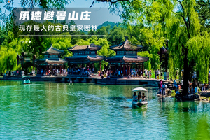 避暑山庄环绕山庄婉蜒起伏的宫墙长达万米,是中国现存最大的皇家园林。避暑山庄借助自然和野趣的风景,形成了东南湖区、西北山区和东北草原的布局,共同构成了中国版图的缩影。宫殿区建于南端,是皇帝行使极力、居住、读书和娱乐的场所,至今珍藏着两万余件皇帝的陈设品和生活用品。避暑山庄这座清帝的夏宫,以多种传统手法,营造了120多组建筑,融汇了江南水乡和北方草原的特色,成为中国皇家园林艺术荟萃的典范。