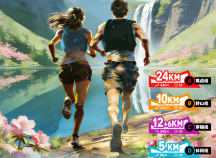 2、情侣CP组:A组B组完成情侣CP任务卡挑战,情侣2人共同闯进各组前三名(号码布盖签到章后在主会场根据名次领取纪念奖品+玉渡山全年免门票);