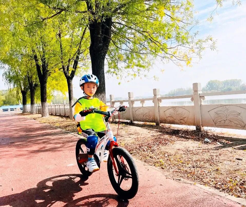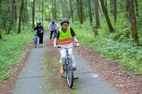 相较于公路骑行道,林荫小道地面没有那么平缓,也没有公路那么宽阔。有的小朋友骑行技术相当了得,各种路况都游刃有余,有的小朋友则觉得有一点难度,不放弃,一直前行,有挑战才会觉得更有趣!