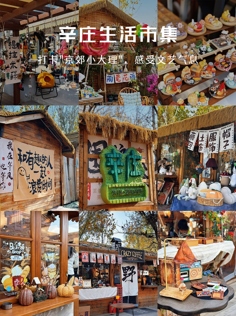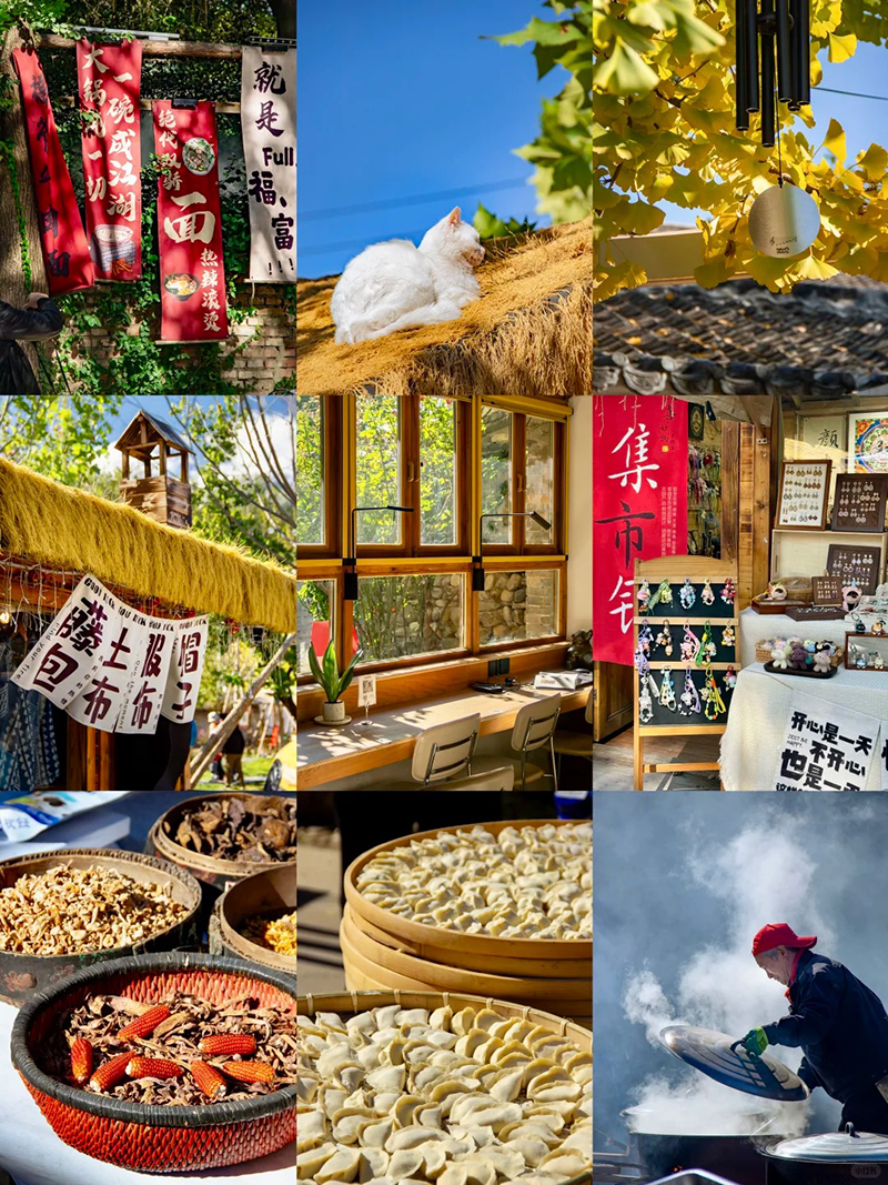 - 下午适时乘坐大巴前往辛庄生活市集,集市上有很多拍照出片的地方,文艺的墙绘、摆满蔬果的摊位、特色的店铺门口,随便一拍都很有氛围感。漫游在小村落细品这自由散漫的生活,仿佛看到了诗和远方,这份休闲和浪漫几乎让所有人都慢了下来,久违的放松感~(周四团期市集不开放,到时候可以在村子网红打卡店铺拍照)