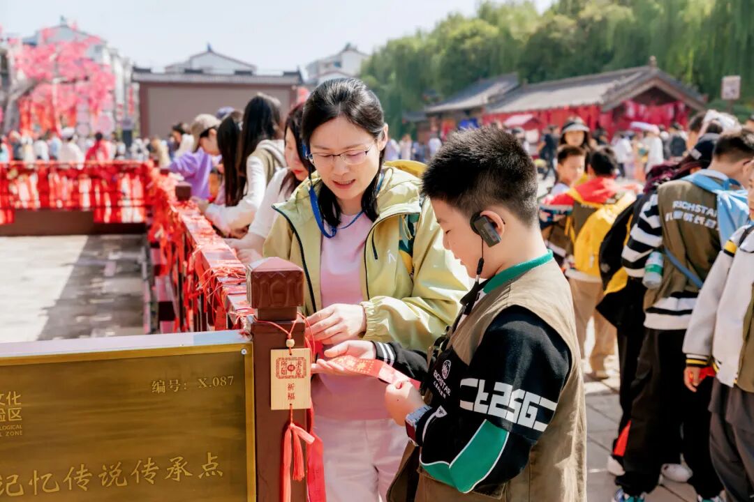 拿着祈福牌,写下愿望,在供奉“文昌”和“奎星”文峰塔下祈福,保佑营员学业有成!