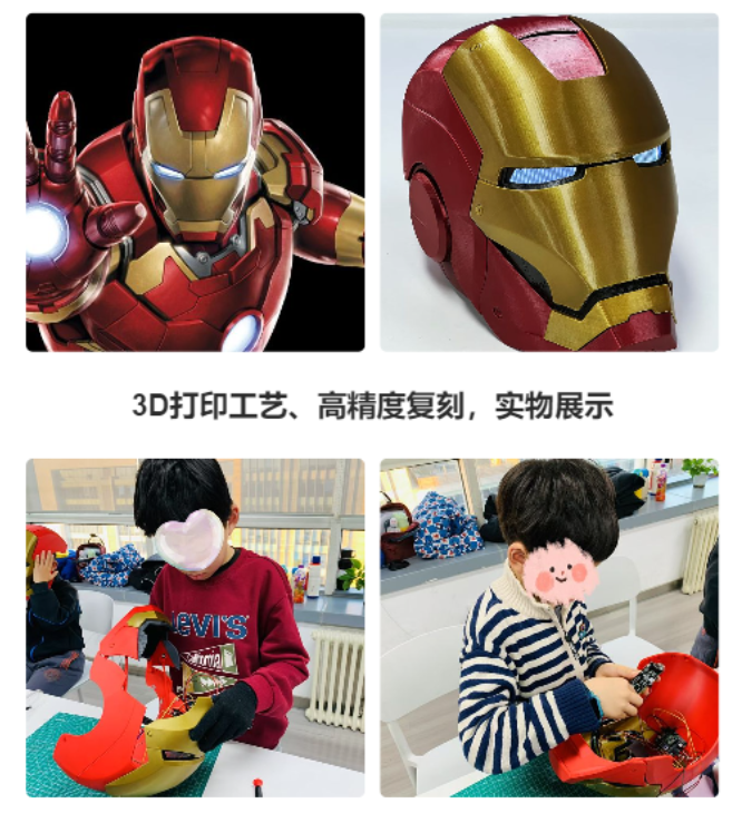 【 好玩活动上新推荐】【中科院研学·复刻钢铁侠头盔AI训练】精密数字化建模·AI产品全流程开发·语音控制实践适龄👶:7+地点📌:海淀中关村附近+🦸‍♂️ 高精度 3D 打印工艺复刻,亲手组装还原《钢铁侠》战甲头盔硬件💻 掌握 AI 语音控制与智能硬件开发的核心技能,对语音控制面罩开合和眼灯🪛 学习电子电路原理,包括电路的组成、电流、电压,进行电路设计🤖 完成一款属于自己的 AI 驱动钢铁侠智能头盔带回家,可...